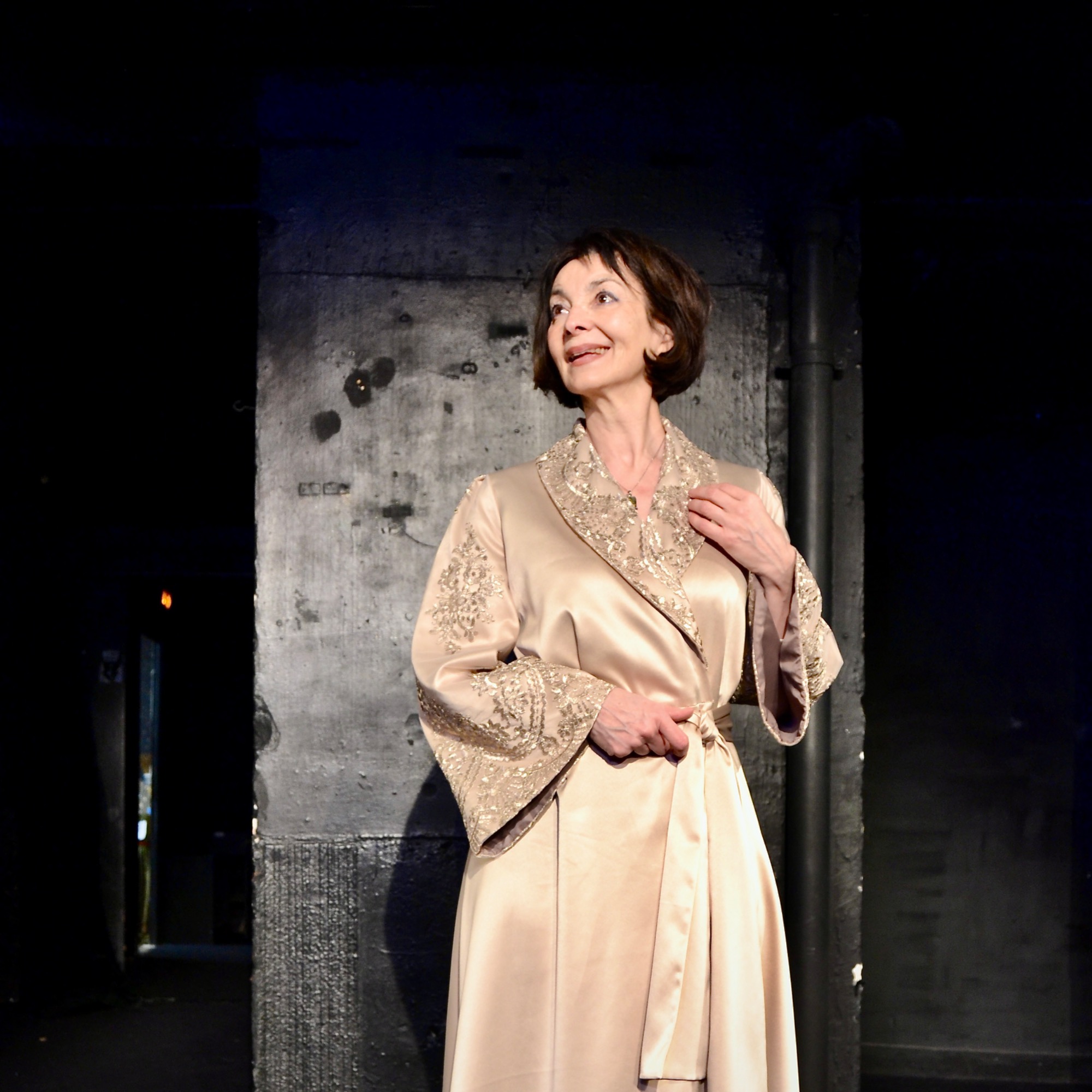 Mais elle n’est pas tout à fait seule. Dans l’ombre, ou dans sa mémoire, d’autres figures apparaissent — Laurence Olivier, compagnon de passion et de rupture, mais aussi des visages aimés ou rêvés, des interlocuteurs réels ou imaginaires, qui prennent forme au fil du récit. Ils ne se matérialisent jamais sur scène, mais Vivien leur donne place. Elle dialogue, interpelle, se souvient.